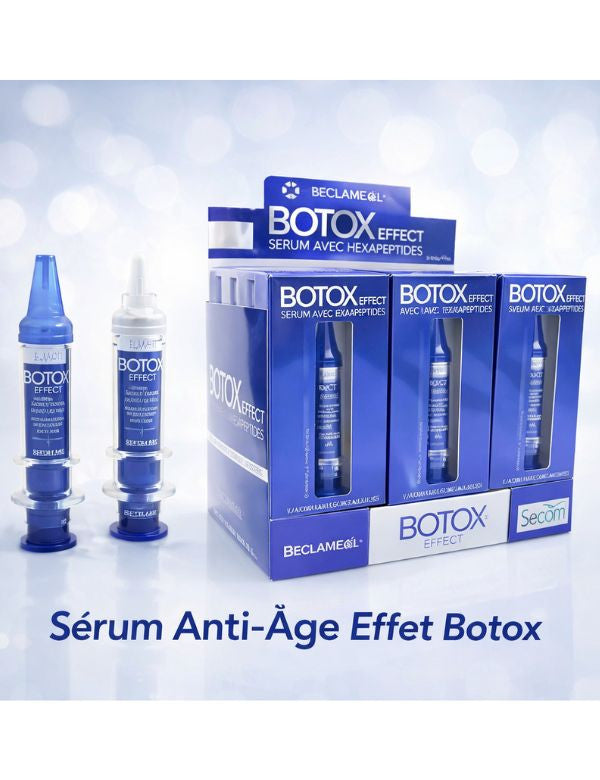 Découvrez le sérum effet botox enrichi en hexapeptides, conçu pour lisser visiblement les rides et raffermir la peau dès les premières applications. Sa formule légère pénètre rapidement sans laisser de film gras, offrant un effet tenseur immédiat et un toucher soyeux. Idéal pour une routine anti-âge efficace, ce sérum améliore l’élasticité et redonne éclat au visage. Parfait pour usage quotidien et adapté à tous types de peau. Produit à forte rotation, idéal pour la revente.